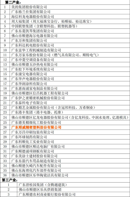 本報(bào)訊(記者 潘宏華)2014年7月24日,廣東省佛山市順德區(qū)經(jīng)科局在官網(wǎng)上公布了2014年度順德骨干企業(yè)名單(第一批)擬認(rèn)定名單,共有39家企業(yè)在列,其中第二產(chǎn)業(yè)骨干企業(yè)有36家企業(yè),第三產(chǎn)業(yè)骨干企業(yè)有3家。廣東順威精密塑料股份有限公司(以下簡(jiǎn)稱(chēng)“順威股份”)順利入選第二產(chǎn)業(yè)骨干企業(yè)名單!