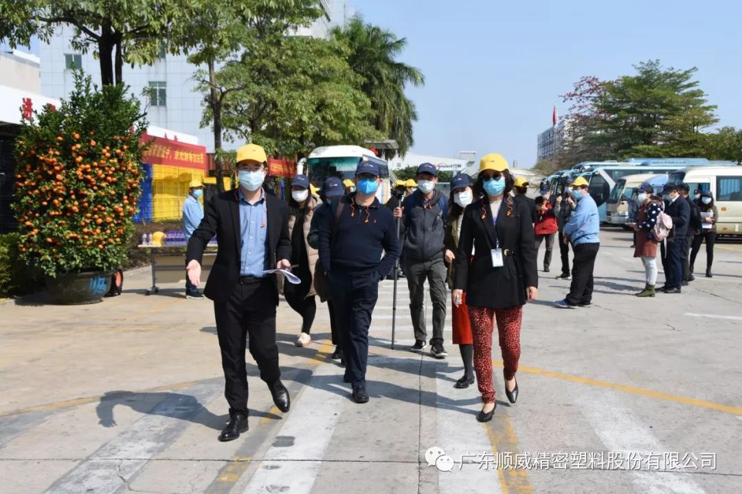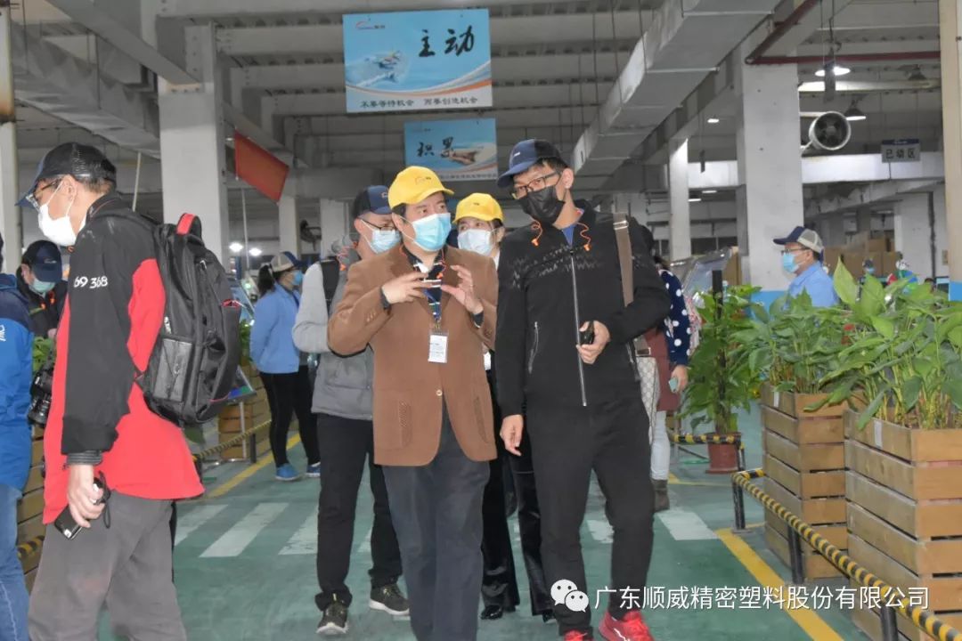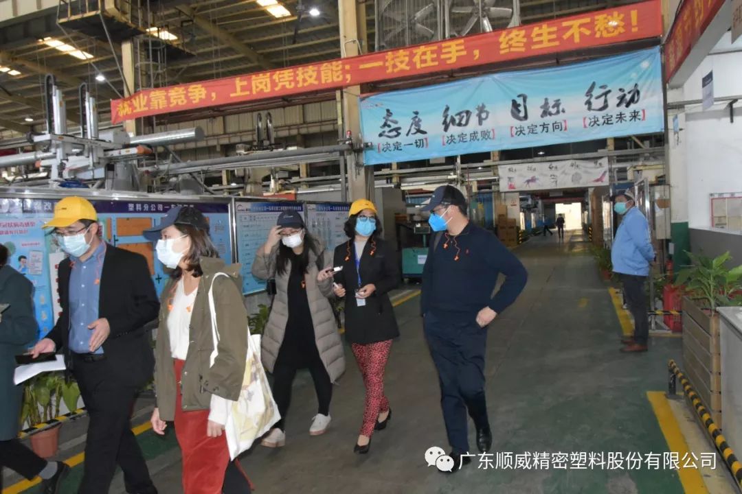 順威股份董事/總裁莫綺顏、董事/副總裁成再育、董事/副總裁/董事會秘書李笛鳴、工會主席/審計(jì)部總監(jiān)童貴云、順德塑料分公司總經(jīng)理范瑞強(qiáng)、順德模具分公司總經(jīng)理龐利彬、集團(tuán)戰(zhàn)略及商務(wù)中心/集團(tuán)人力行政中心總監(jiān)羅華、國內(nèi)營銷中心總監(jiān)助理/大客戶部高級經(jīng)理王曉菲,一眾公司高管團(tuán)隊(duì)在廠區(qū)廣場迎接中外媒體參觀團(tuán)一行的到來。