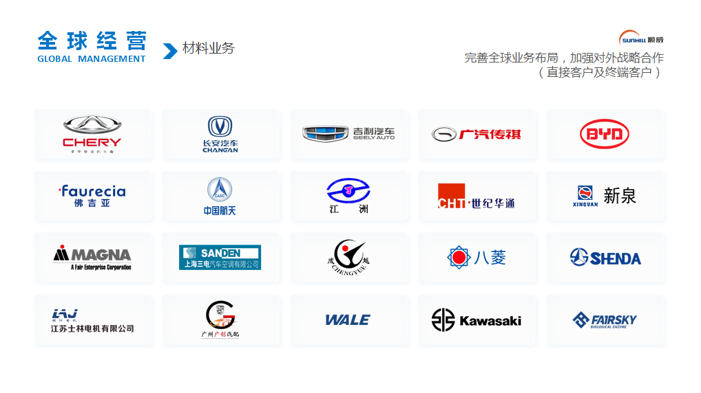 未來(lái),順威股份將積極落實(shí)“同心多元”發(fā)展戰(zhàn)略部署,在保持風(fēng)葉領(lǐng)域品牌、規(guī)模、研發(fā)優(yōu)勢(shì)的同時(shí),緊抓新能源汽車發(fā)展機(jī)遇,將汽車業(yè)務(wù)板塊打造成為順威股份的第二張名片,大力推動(dòng)新能源汽車輕量化材料、熱管理系統(tǒng)、儲(chǔ)能系統(tǒng)、內(nèi)外飾系統(tǒng)等業(yè)務(wù)板塊實(shí)現(xiàn)快速發(fā)展。